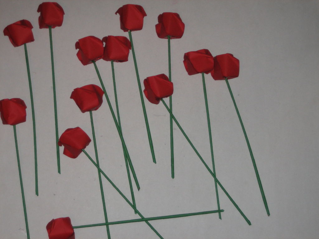 揉成了一打玫瑰,并安排在一起,形成一束。茎牢...