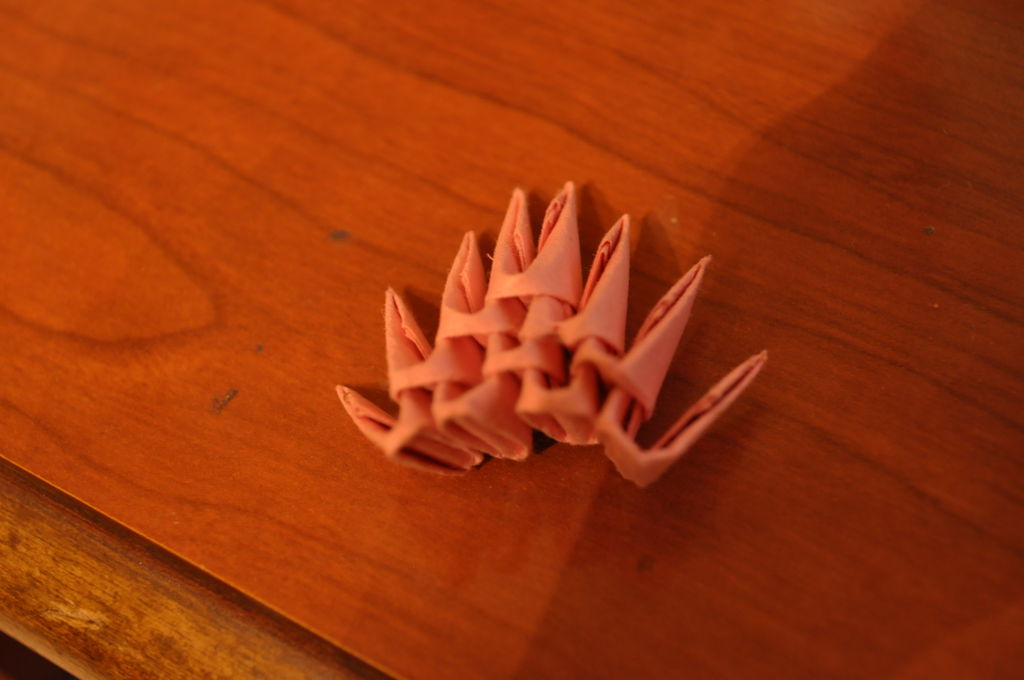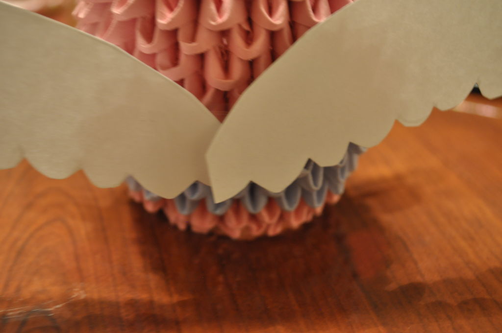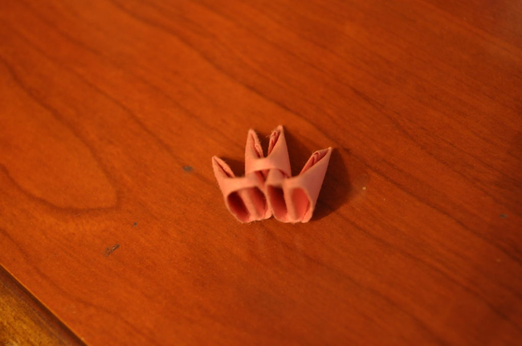 第6行完成后,颈部有猪。这是一个非常微妙的缩进到cupig中,所以如果你想跳过这个工序中,将不会影响结果太多。在这一排,每一块“向后”的图片说明步骤胜于言。请注意,只有这行件穿上倒退。在此步骤中,您还可以将武器的cupig所切割出来纸,贴在他们之间的差距件。