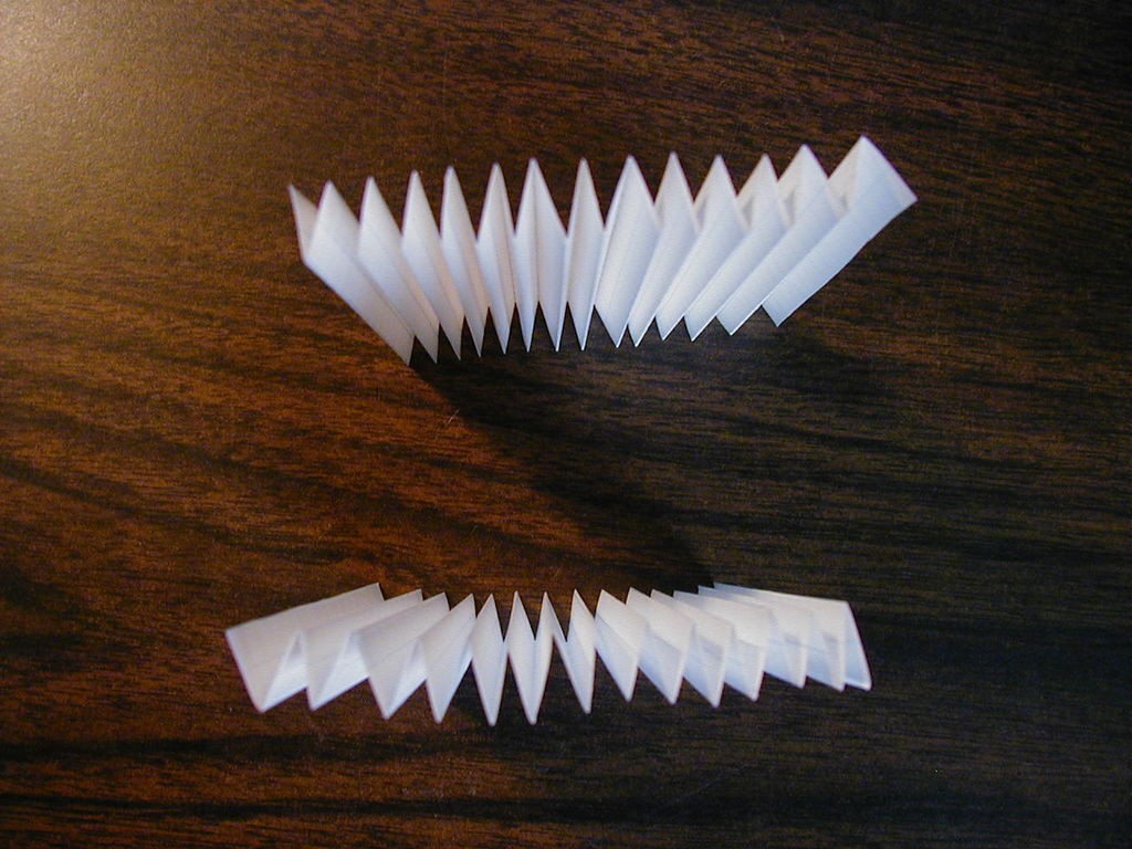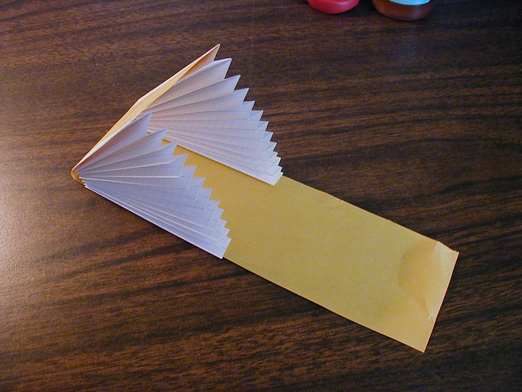使这里有一个涂胶选择:内部(看到白色的样品)或外(见棕色样本)。最简单的胶合方法外,但关闭时,手风琴材料显示在外面。内侧胶合方法从外面看,具有简洁的外观,但更难对齐。您的choice.Cut一块宽覆盖材料作为最广泛的(“最高”? - 检查图像)卡将存储。对于内部粘合,它说,另外1/8“更广泛。剪下一块约长3倍的一张名片(正面,背面,顶部瓣)以前,当fanfolding 0.25“或0.20”四对舞图文件(长度11“),你可能结束了一个额外的皮瓣,有点像一个手风琴:/ \ / \ / \ / \ / \ / \ / \ /,像一个“N”太多的中间位。削减其中之一,所以你最终像这样的东西:/ \ / \ / \ / \ / \ / \ / \ / \,像一个“M”太多的中间位。这是更多或更少的可选的内部的方法,强制性的外部method.Inside:胶的最后一个手风琴襟翼的外侧,将其与在罩的一端的侧面。重复其他手风琴条状,宽度方向的另一侧。如果你需要的话,存储到车厢间放置一个卡盖材料,检查是否有合适的。确保手风琴是“镜像”,也就是说,他们创造对称的“车厢”之间them.Outside:手风琴第一瓣里面的胶水,并把它放在封面材料的一端。材料本身和褶皱帮助获得完美对齐。其他手风琴的封面,宽度方向的另一侧重复。