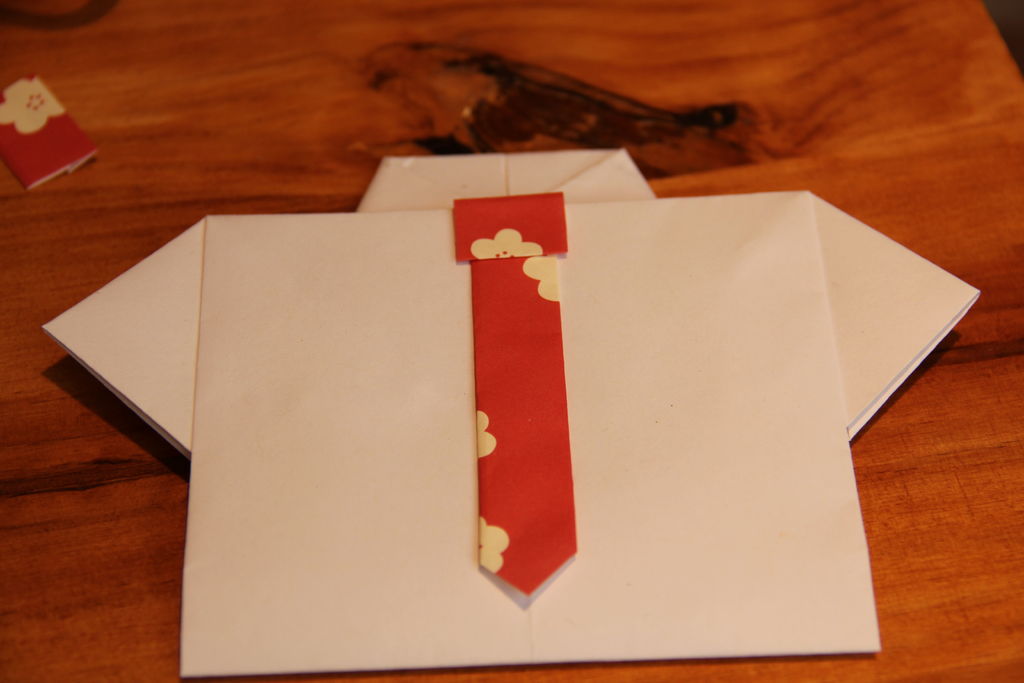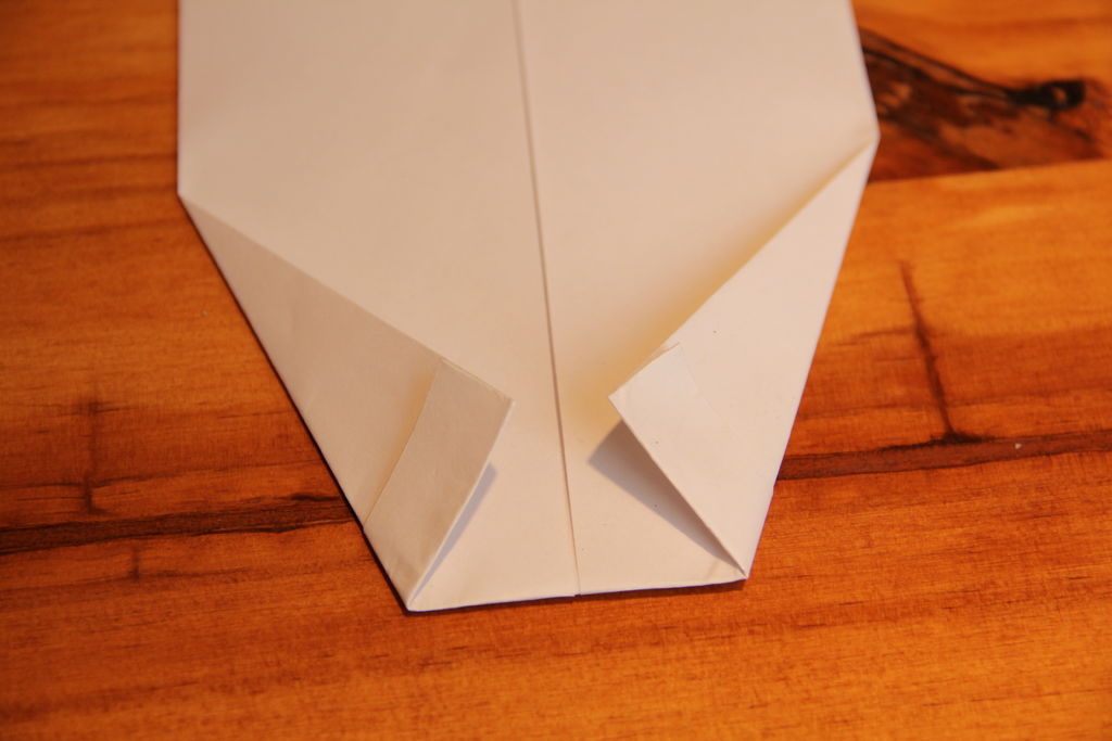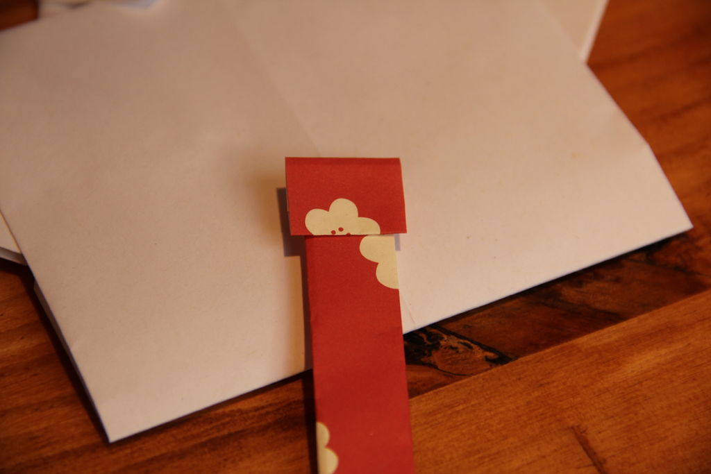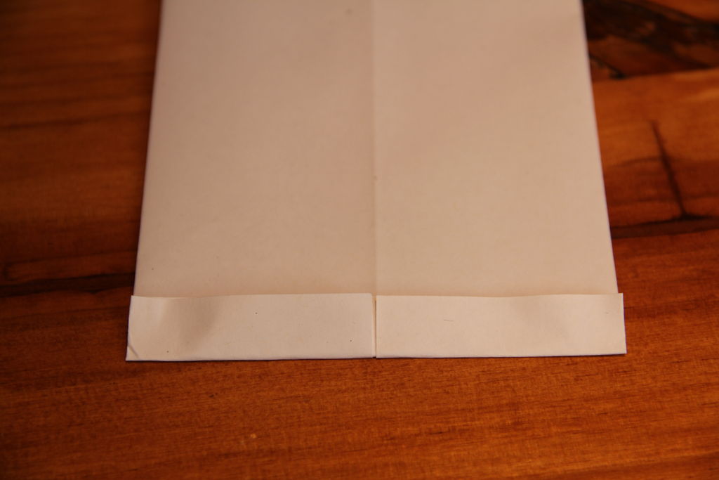 打开纸张倒置,并翻转。折下来一点点的顶部边...