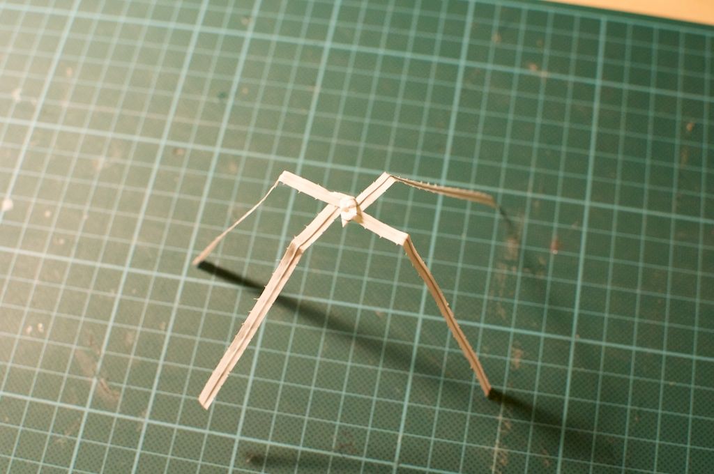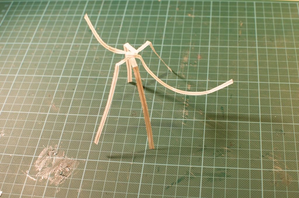 我认为将解释什么是你需要做的图片。所有评论图片以及文本添加...为了使腿和身体:图片1:折叠的两片层中为V形。请急剧倍。图2:将V形的相互转化层。图3:一个V形层比其他层的双腿紧紧的腿扭。此修复关节。图4:向下弯曲的腿从关节约3厘米(1英寸)。你的怪物,现在看起来像蜘蛛。