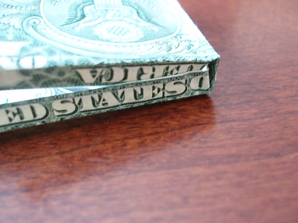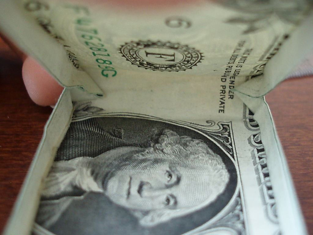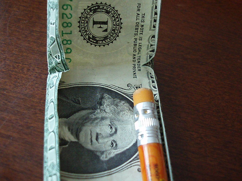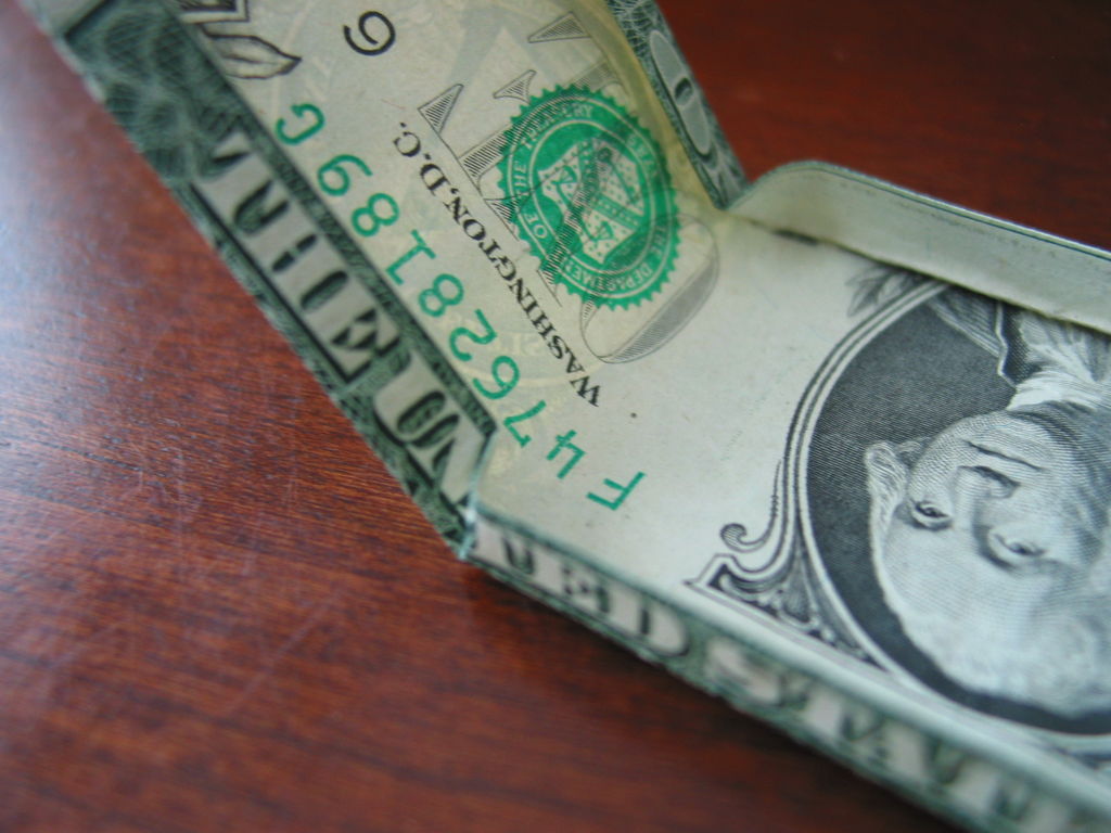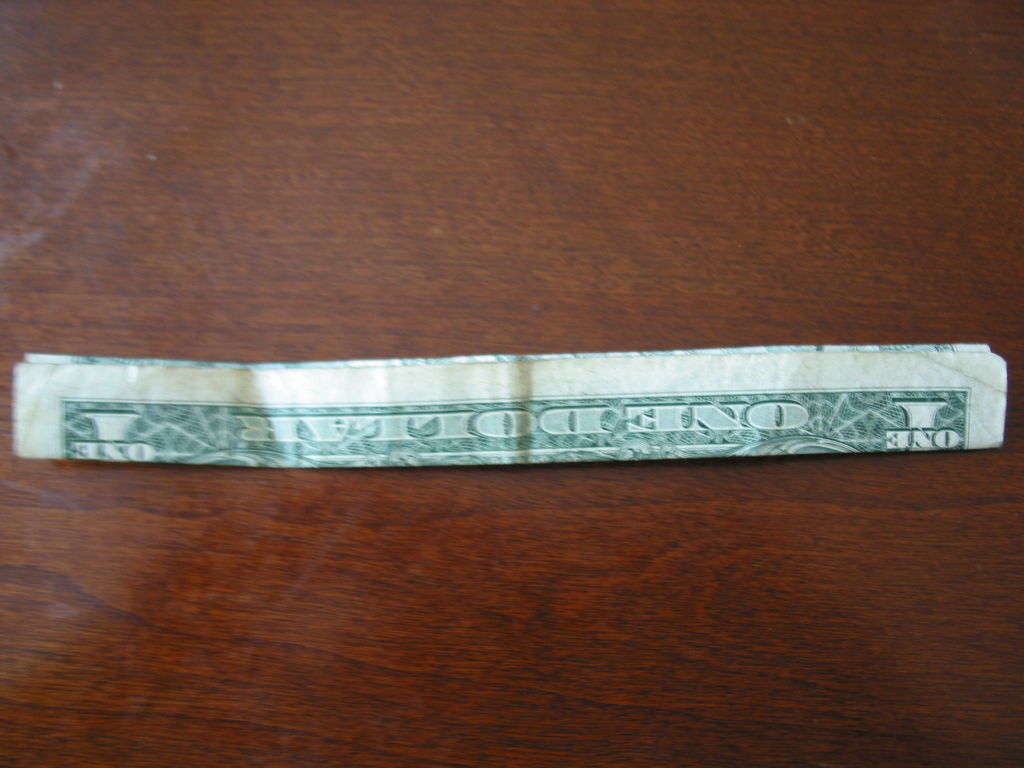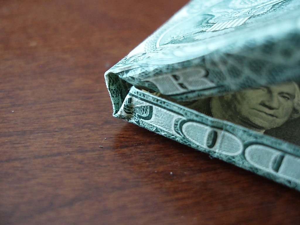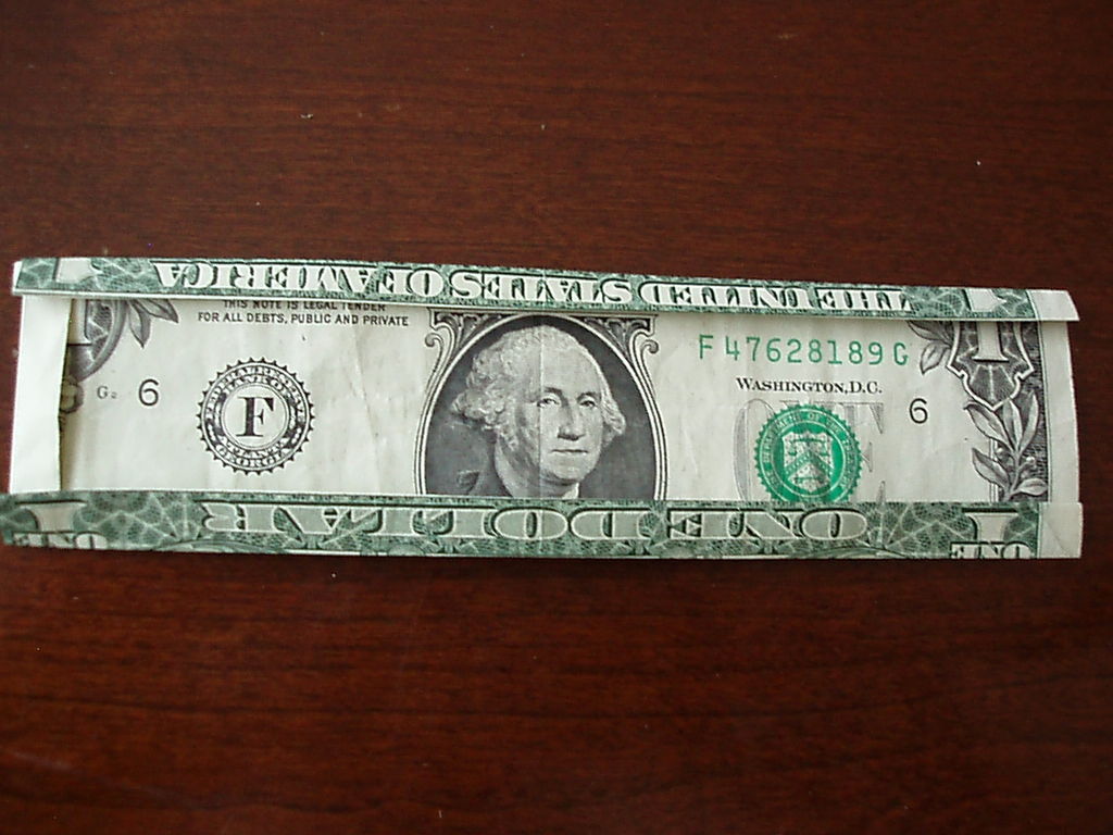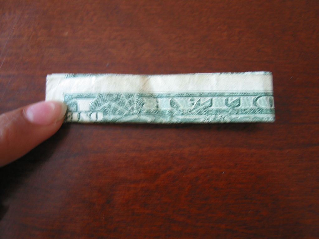 确保你开始正确的方向。你真的需要看到的图片为这一个。我把辛苦了!旁边,你需要小心的步骤,他们很难!折叠你的美元的一半汉堡包。展开。折叠左边距中,如图所示。折叠的顶部和底部边距再次折叠他们。可以肯定的顶部和底部边距很均匀,否则你的机器最终会渐行渐远。折叠的左侧直至华盛顿的边缘。虽然这样做,拉边出,形成所示的褶皱。折痕都记录下来。辛苦了!抠底挤掉了,而推顶边回来,和弄皱的角落。辛苦了!把你的铅笔,并在孔(第一橡皮擦端)滑动。反推小瓣东西(如图所示)和折痕周围的一切吧。我大惊小怪与此很长一段时间之前,我得到了它寻找恰到好处。确保你弄皱每件事情做好,给它最好的四四方方的形状。难难难!!!该是多张图片为这一个。滑动衬衫英寸的袖子不适合,所以后面的折叠他们。做一个精神记下衬衫的底端,并把它拿出来。折叠结束了在那个地方。就像你在步骤5中所做推入顶部边缘。此外,保持底边向上。使相同种类的角为5步。辛苦了!关闭对话框,折下来,你刚才提出的皮瓣,然后向下折叠的其他瓣和掖在边缘。完成了!太好了!