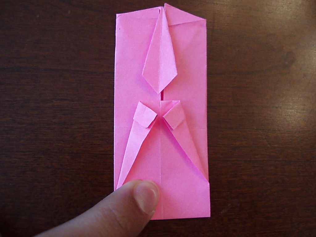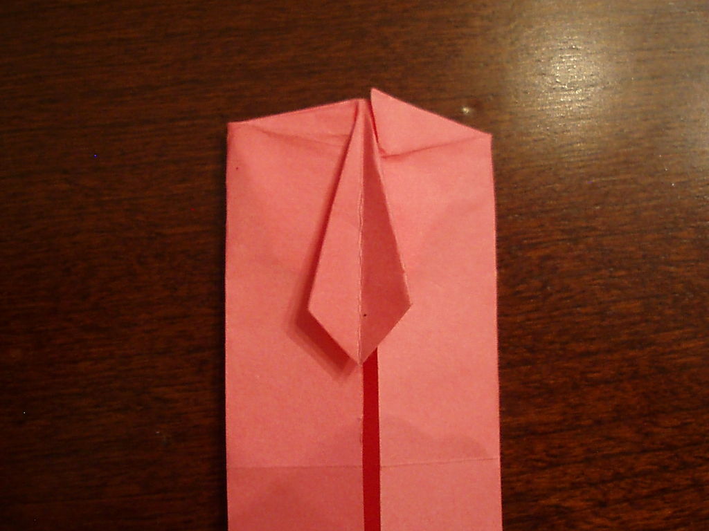 弄皱每件事情做好。折叠你的美元钞票在纵向的一半。折上角中间。折叠整个三角形向下。用铅笔和直尺画出你的领带的形状。你可以把它不过你想要的,但不能太瘦,否则将无法正常工作。展开三角形。沿着你刚刚所做的折叠线。折叠三角回落。折了一半的领带,使领带的一侧到另一。扁平化的顶级它遵循的时候。当您再次展开了领带,就应该伸出。对另一侧重复6和7。折叠的左和右边缘,以满足中心,如图所示。展开你刚才提出的褶皱之一。重做了,这个时候做标记的角落相见。这将需要一些大惊小怪,但你会得到它的权利,最终。重复另一侧。折叠的纸张上涨约1/4英寸的底部将纸张翻转过来。折叠的底部角落中以一角度,以满足中心。这是你的衣领。将纸张翻转过来。折叠的底部向上,以便有一个在领带的底部和套环之间的1/8。撤消此折。重做,拉出中间,当您去。当您再次将其压平,应该有'套'。如果你想更大或更小袖,或拉他们轻推并压平。将纸张翻转过来。折了整个事情的一半,如图所示。折叠起来的衣领,使其偷窥在衬衫的顶部。翻过来,并勾上了衬衫的衣领。