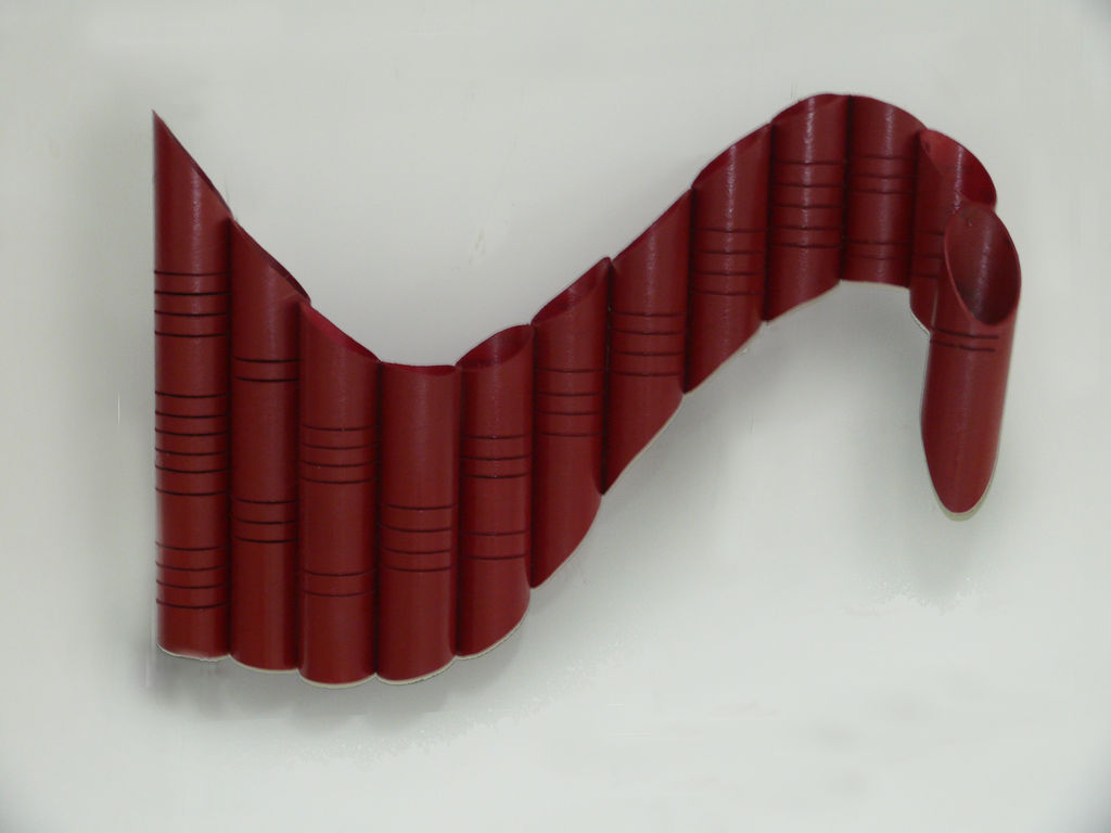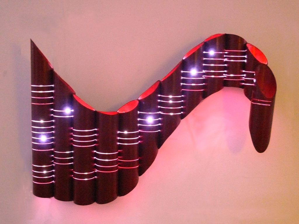 当它们一起我上标明的tubes.That线的前表面的某些行可以是2,树,4或five.It的最多you.Then我们凹槽4毫米thickness.When线的切割完成后,我拧在一起用drill.i加入他们一起tubes.This的不同面做出了3D浪潮form.So的形状变成了上升浪墙上的形状。