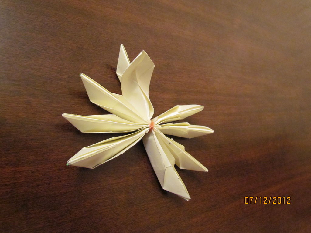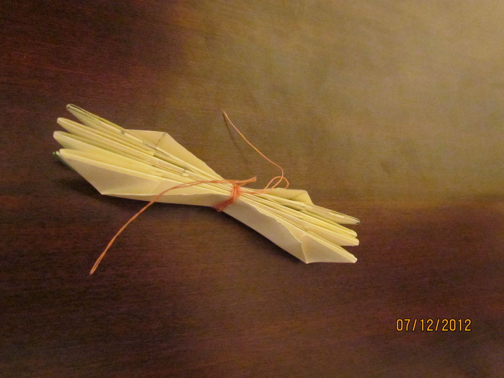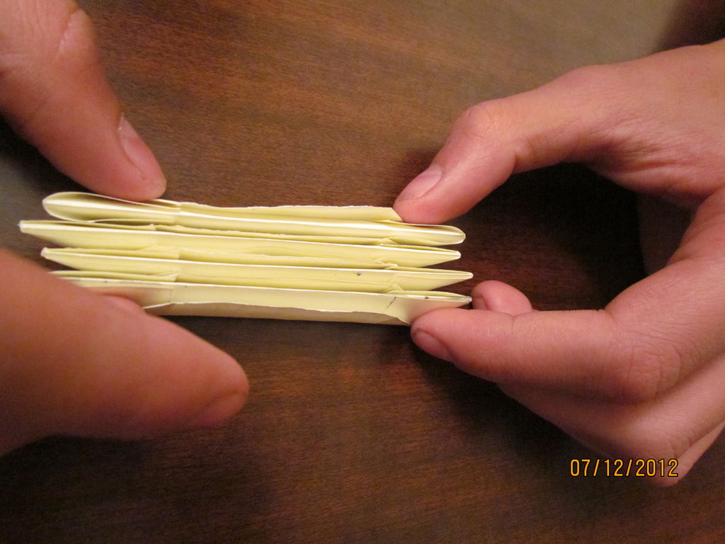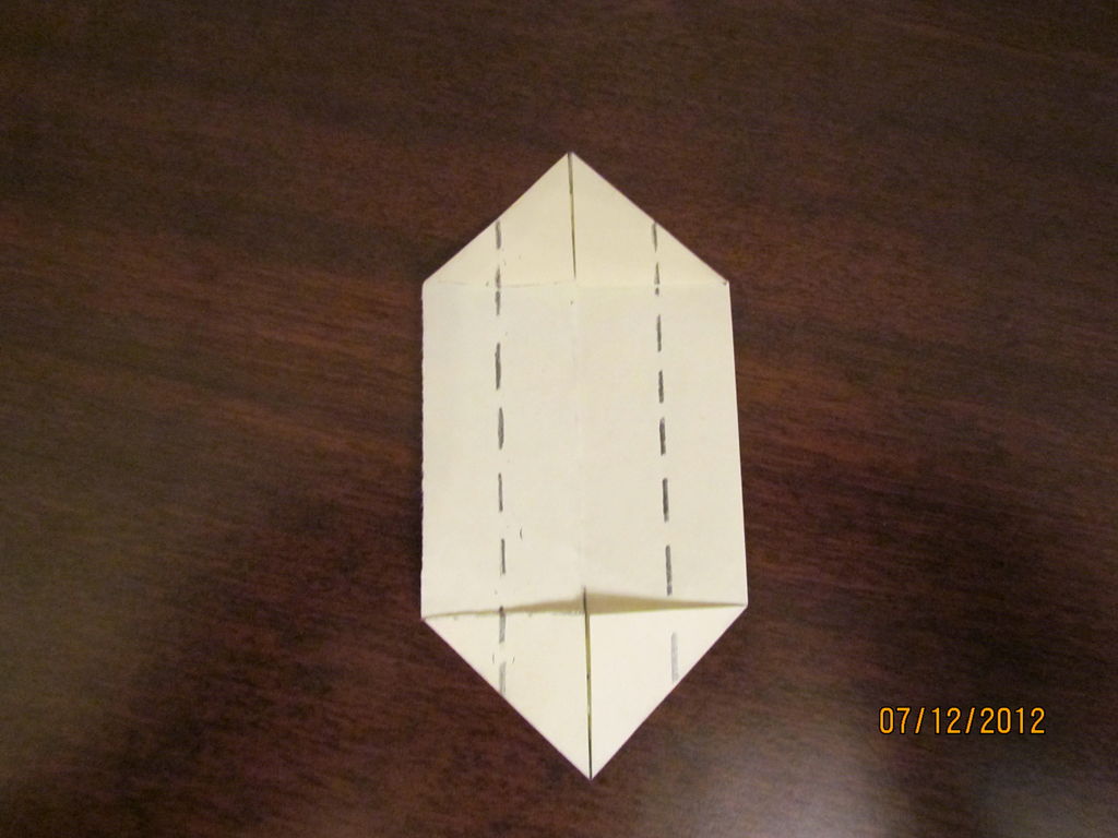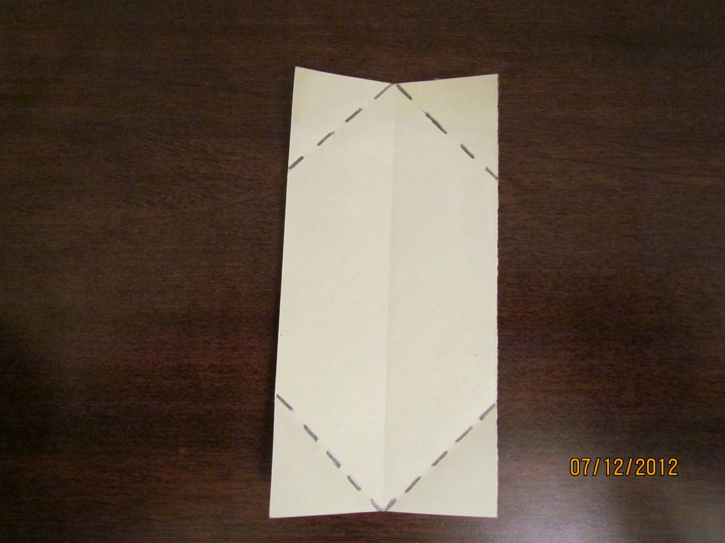 1)切在中间2)对折,中间并打开它3)它折叠的边缘4...