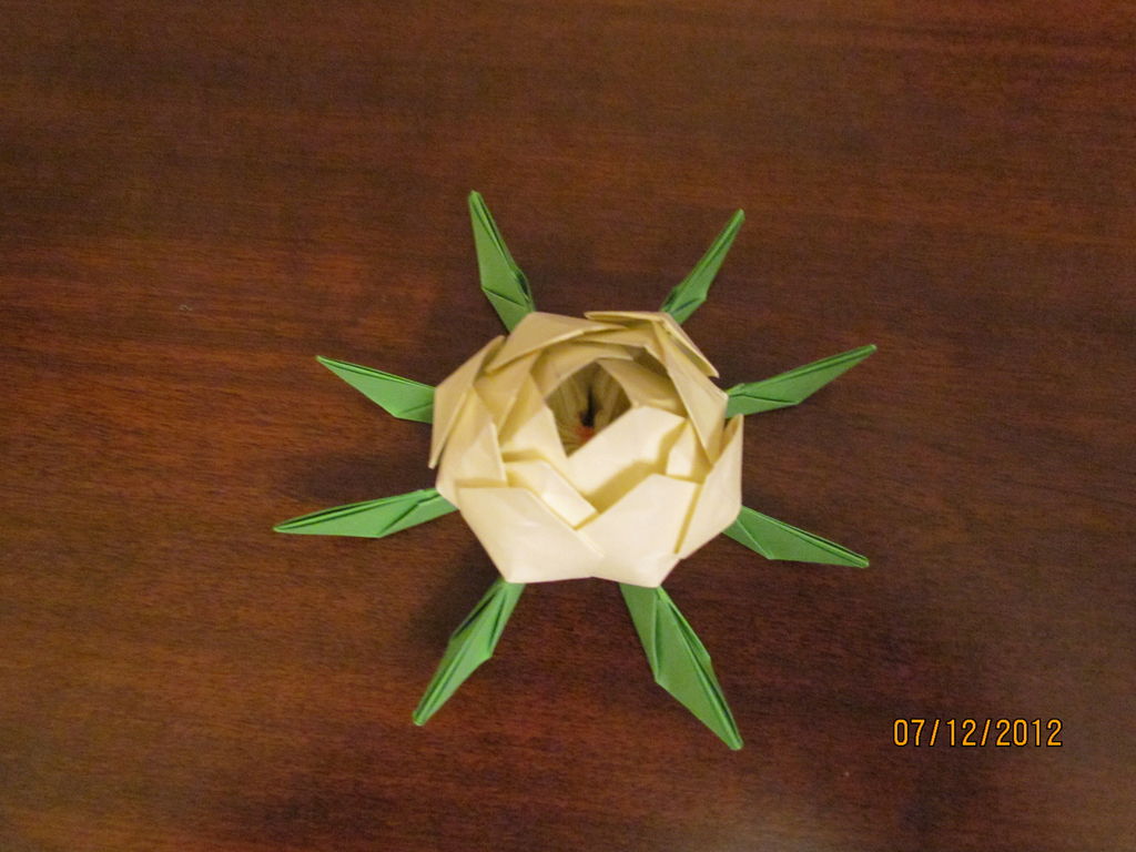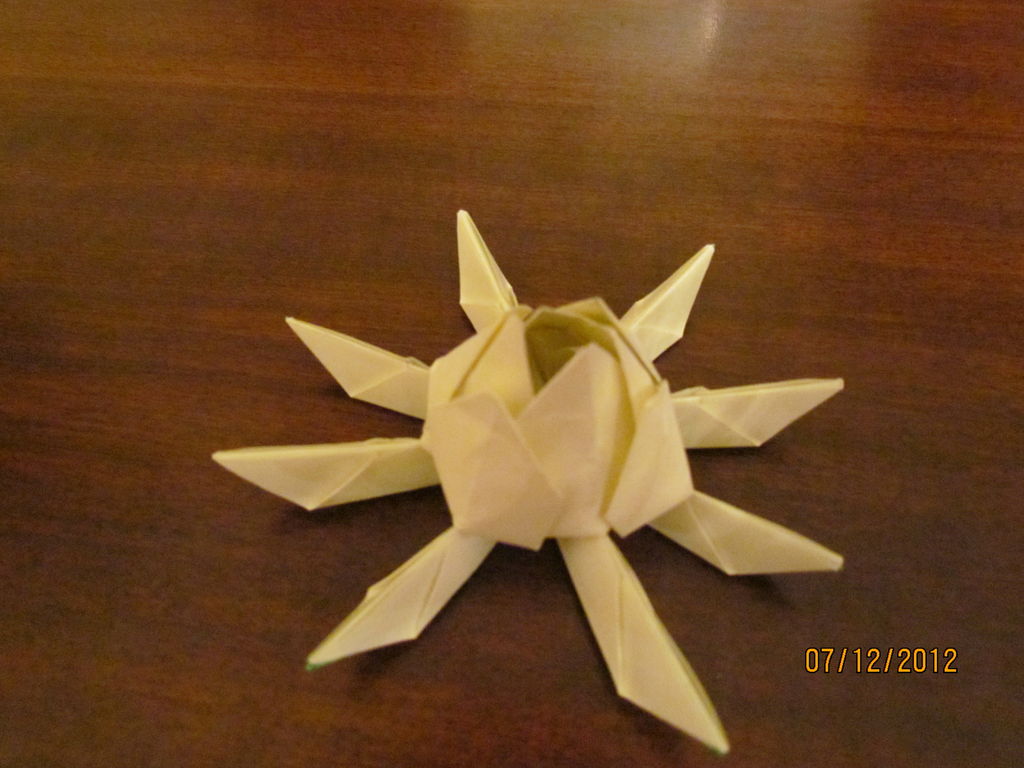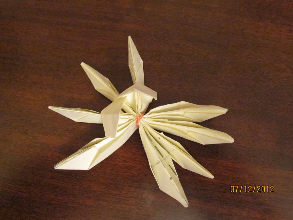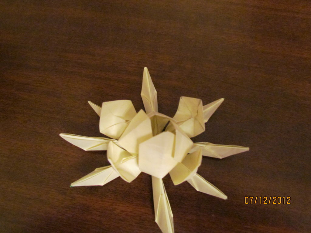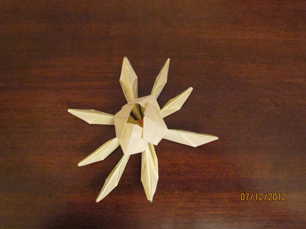 1)切在中间2)对折,中间并打开它3)它折叠的边缘4...
