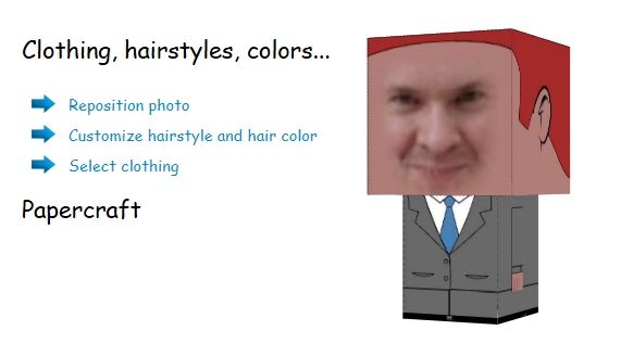 访问http://www.paperme.de/en创建可打印的切出片。使用本网站是免费的,不需要注册。在网页上点击“新PaperMe”。上传您的照片,并使用旋转对齐,缩放和移动功能。选择你喜欢的衣服,头发和颜色。下载您切出片的PDF文件。