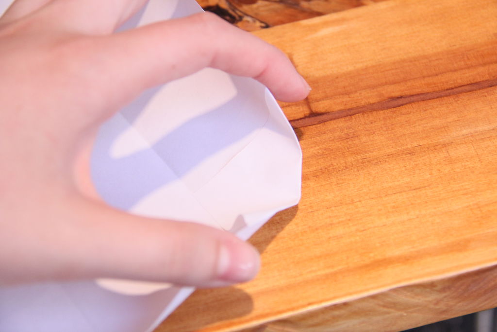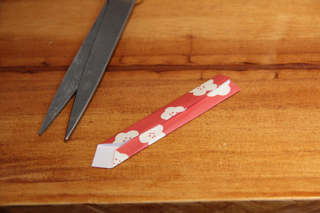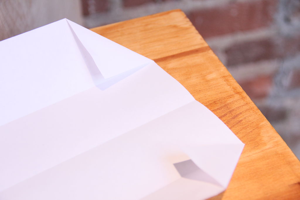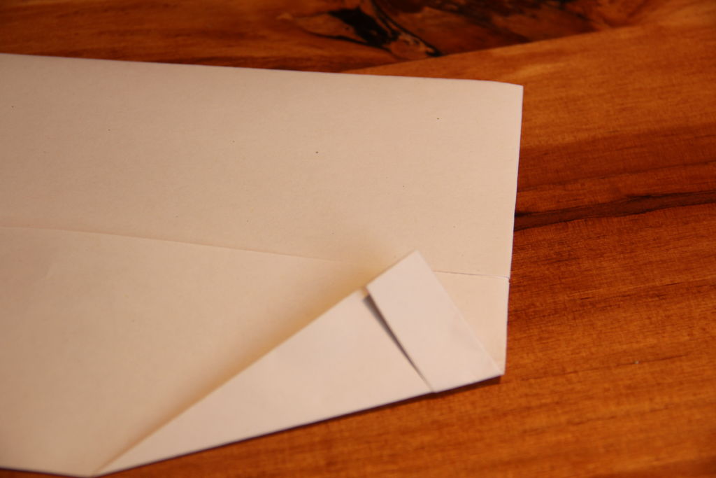 打开纸张倒置,并翻转。折下来一点点的顶部边...