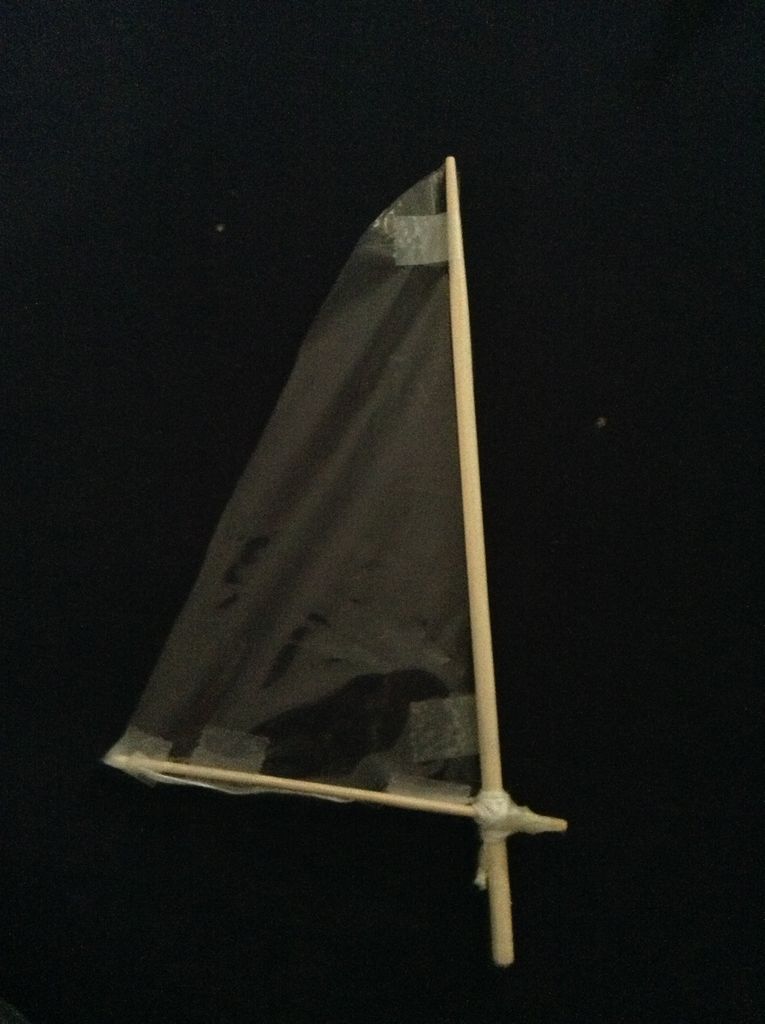 由热胶粘一根筷子和一个串到一起组成一个帆...