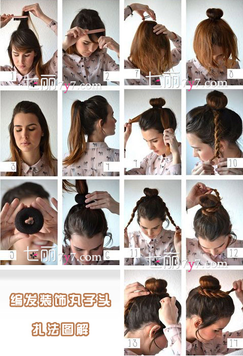编发丸子头步骤要领: