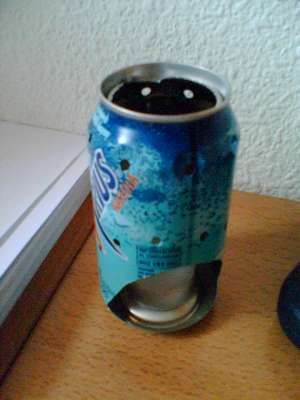 切断与一个可以openner顶部。 削减这方面的...